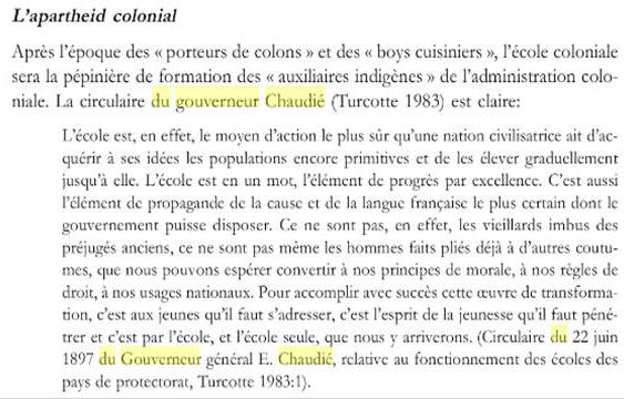 de produire des élites africaines. Ainsi en 1897, il déclare que «