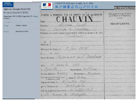 (Eure) - Décédé le 3 juin 1915 en mer, au large de SMYRNE.
