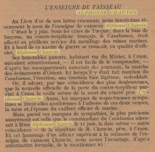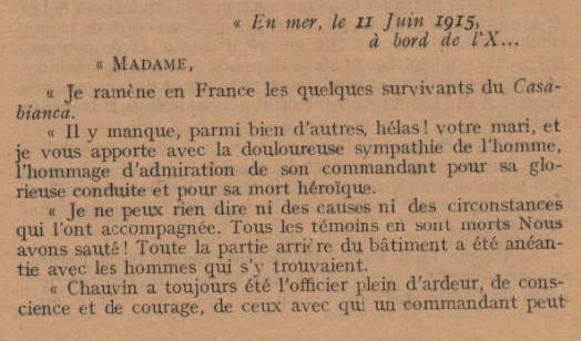 JO du 10 Juillet 1915, l'enseigne de vaisseau Chauvin a reçu la
