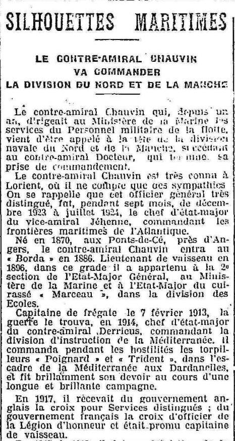 sur le croiseur "DUPUY-DE-LÔME", Escadre du Nord (Cdt Louis THOMAS),