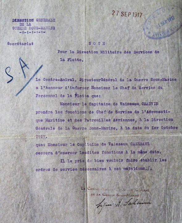 25 septembre 1917, Commandant du Centre d'Aviation Maritime de