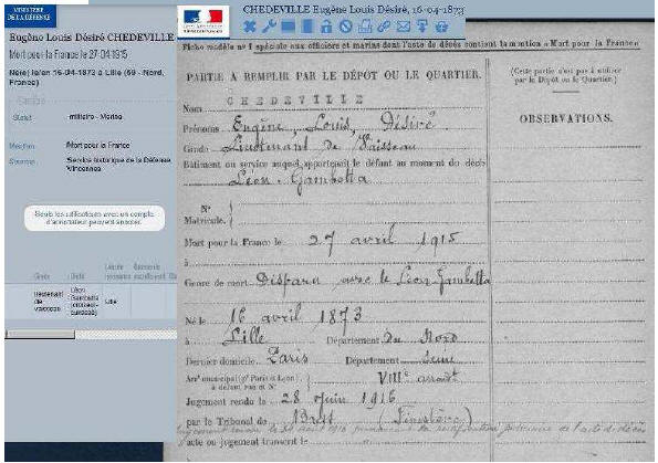 Décédé le 27 avril 1915, en mer au large de SAINTE-MARIE DE LEUCA,