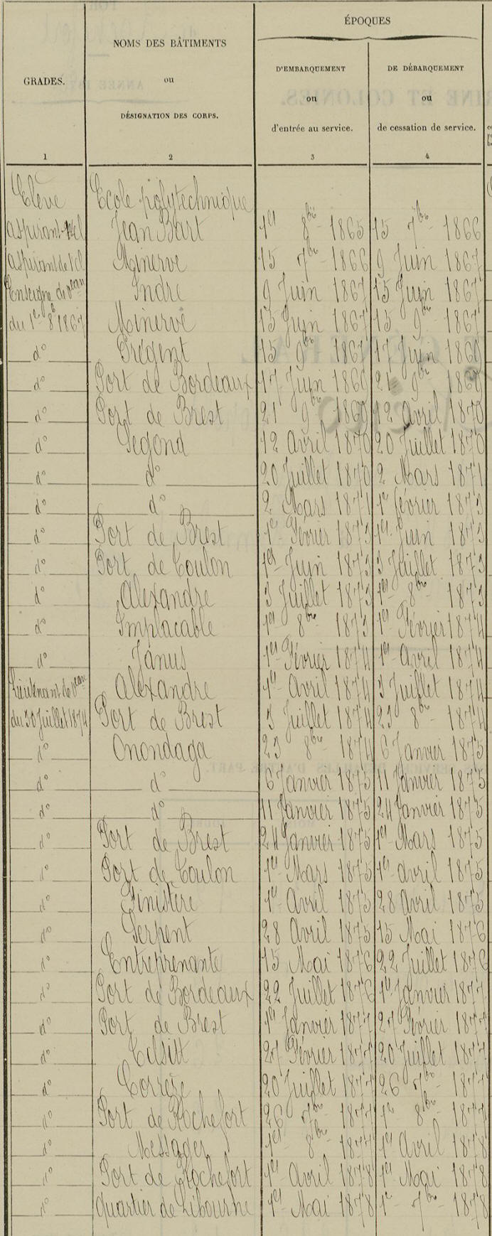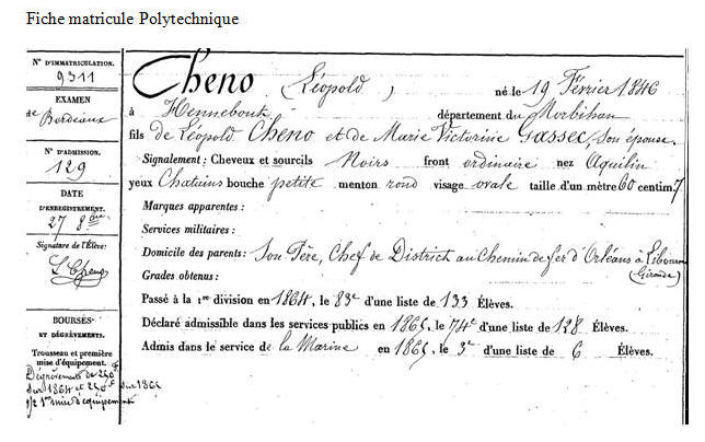 Élève de l'École polytechnique promotion 1863, opte pour la Marine.