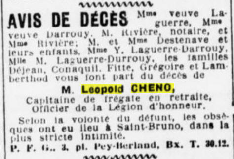HENNEBONT (Finistère) - Décédé le 29 mai 1935 à BORDEAUX (Gionde)