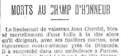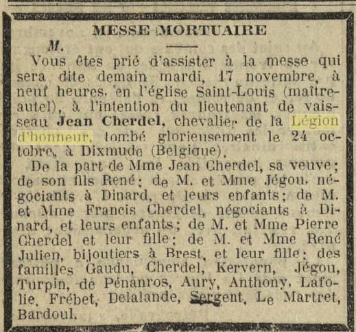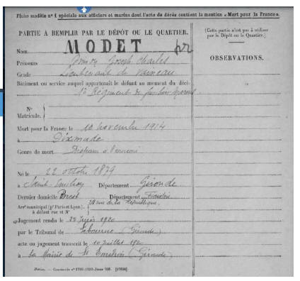 (Côtes d'Armor) - Décédé le 25 octobre 1914 à DIXMUDE (Flandre