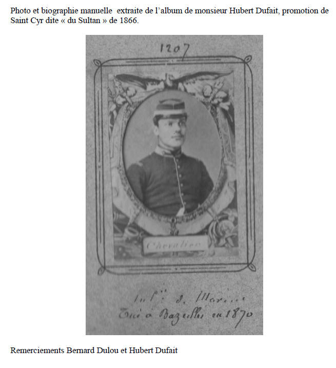 Sous-Lieutenant d'Infanterie de Marine le 1er octobre 1868.