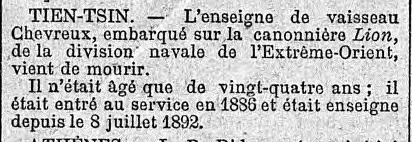LORIENT (Morbihan) - Décédé le 30 août 1894 à bord du Lion, à