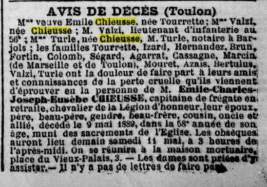 à TOULON (Var) - Décédé le 9 mai 1889 à TOULON (Var)