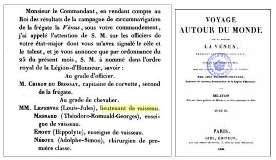 En 1836-39 Capitaine de corvette, Second sur la "VÉNUS"