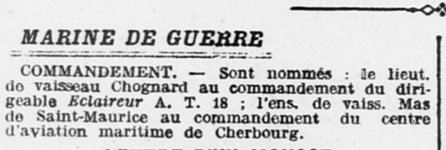 d'entrain. Services exceptionnels comme commandant de dirigeable."