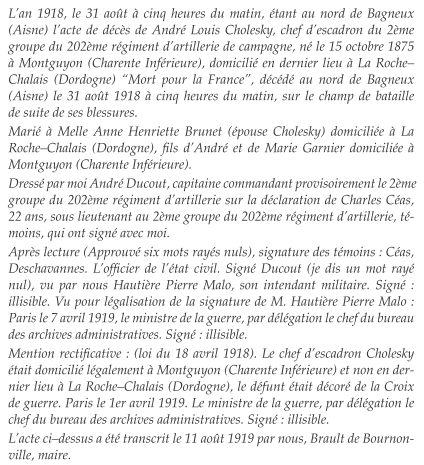 aucun descendant ne porte le patronyme de Cholesky.