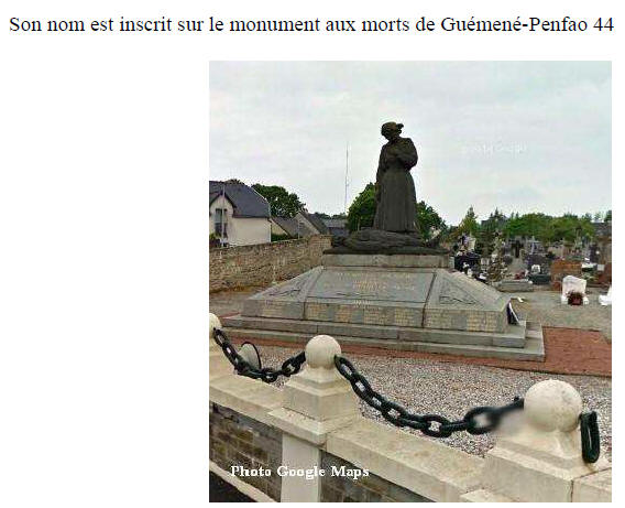 GUÉMÉNÉ-PENFAO (Loire-Atlantique) - Décédé le 6 mai 1943 à La
