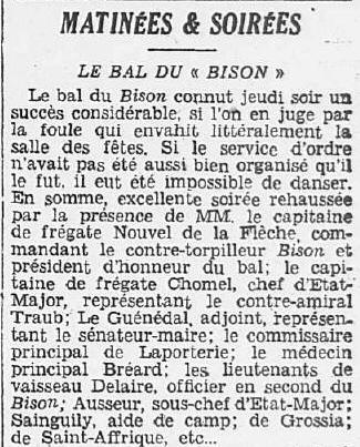 sur le croiseur "DESCARTES" à TERRE-NEUVE (Cdt Jules LAFROGNE).