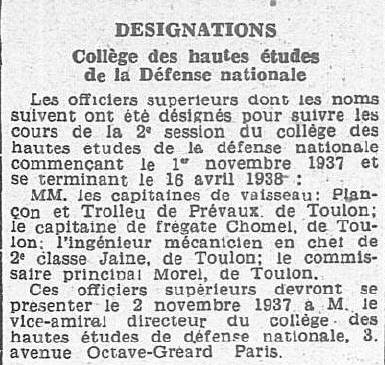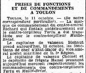 Enseigne de vaisseau de 2ème classe le 5 octobre 1913; port