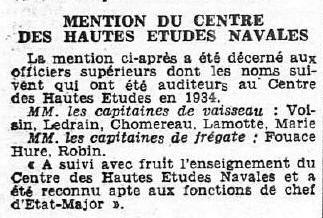 20 avril 1931, Commandant le contre-torpilleur "TIGRE".