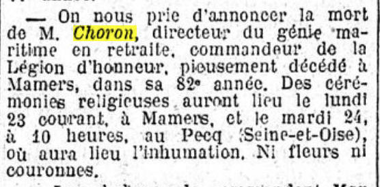 Ingénieur en chef de 1ère classe le 27 août 1891.