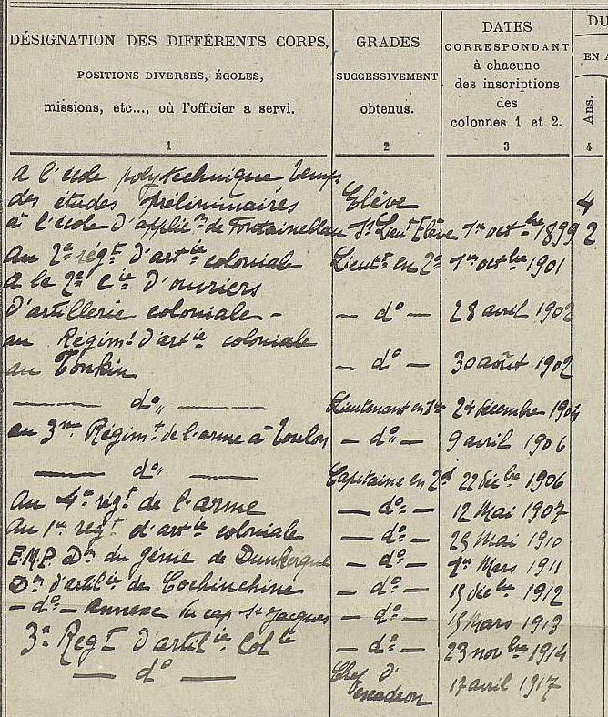 Élève de polytechnique, promotion 1897, opte pour l'Artillerie de