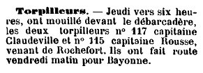 croiseur-torpilleur "ÉPERVIER", Escadre du Nord (Cdt Eugène PAILHÈS).
