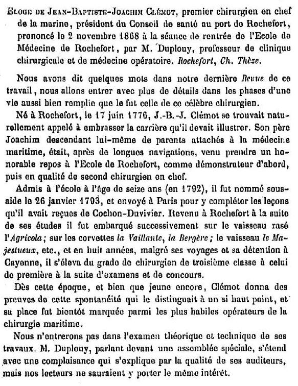 Fils de Joachim CLEMOT, chirurgien de la marine à Rochefort et