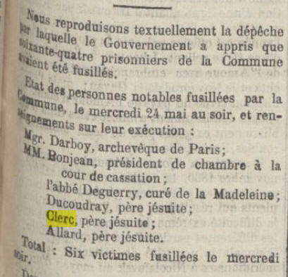 - Fusillé le 24 mai 1871 à la prison de la Roquette