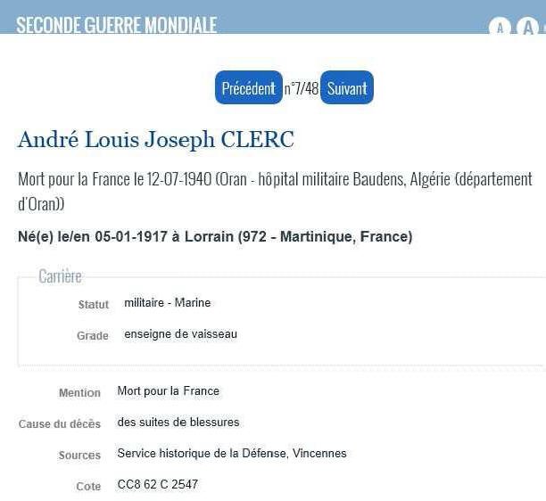 (Martinique) - Décédé le 12 juillet 1940 à MERS el KEBIR (Algérie)