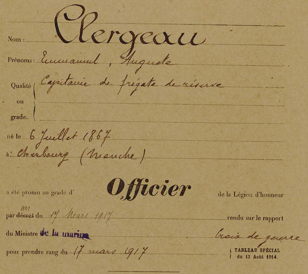 Clergeau, Officier LH et mécanicien en chef de l'Escadre de la