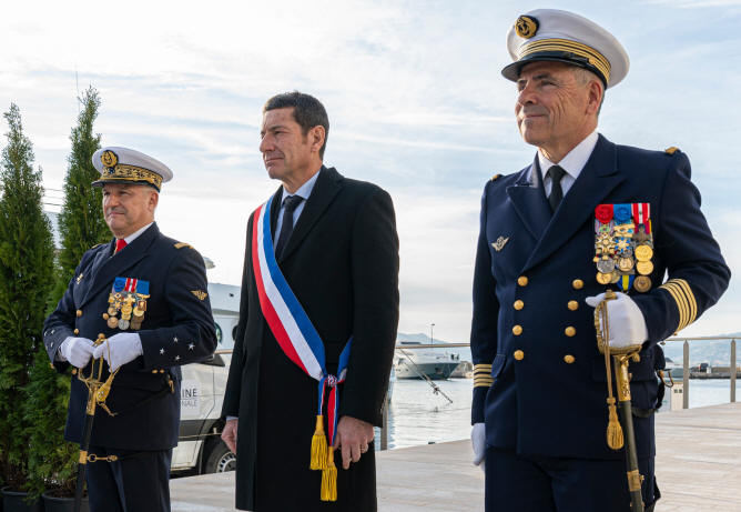 VAE Lucas, préfet maritime de Toulon, David Isnard, maire de Cannes,