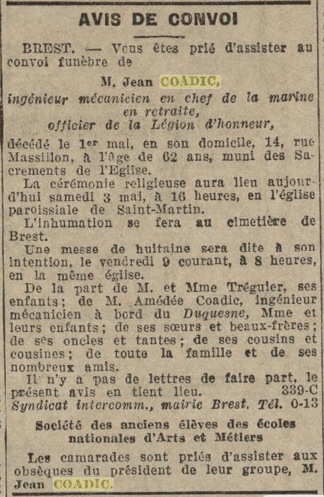 Extrait La Dépêche de Brest / 3 mai 1930