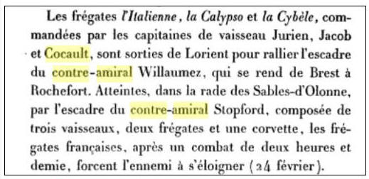 Embarqué sur la frégate La cancale jusqu’en février 1812