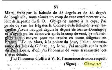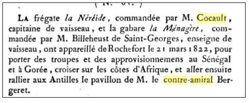 Embarqué sur la frégate La Cérès d’avril à octobre 1802