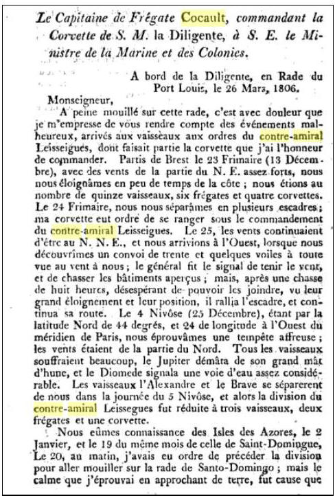 Capitaine de frégate sur la corvette La Diligente d’aout 1803 à