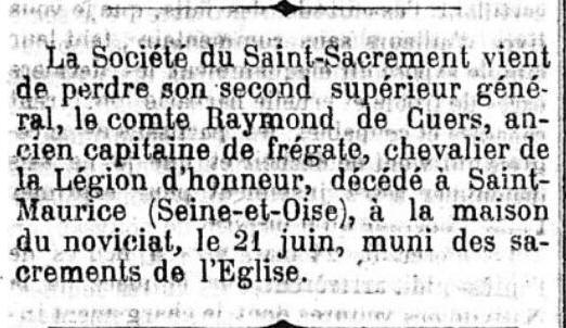 exposé. A la mort du P. de Cuers (21 juin 1871) le culte public