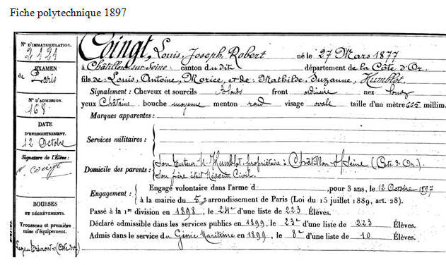 Élève de l'École polytechnique le 1er novembre 1897, opte pour le