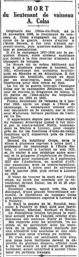 lieutenant de vaisseau Albert Colas, fils du docteur Colas, de