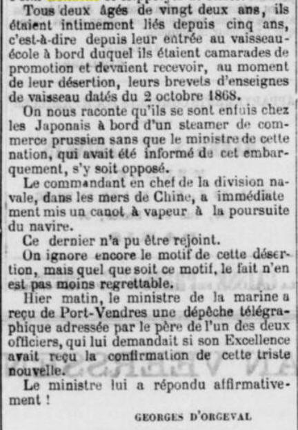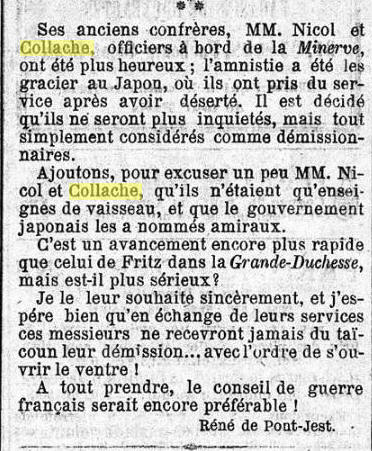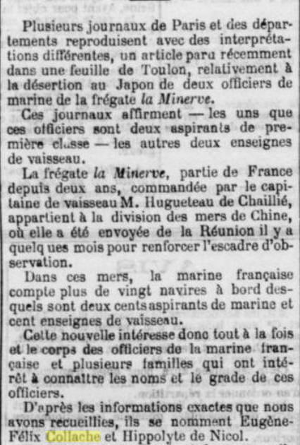 Eugène Collache et Nicol quittèrent Yokohama à bord d'un navire de