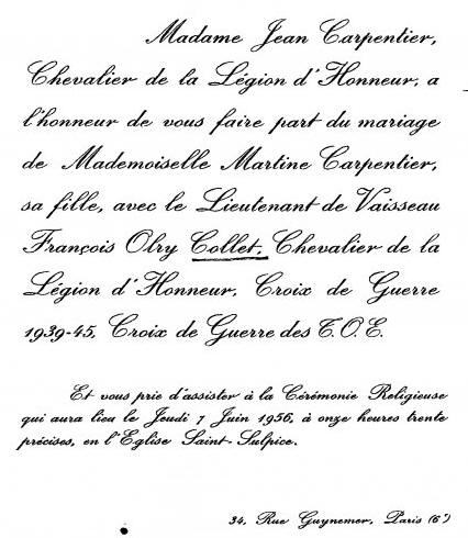 Marié le 4 juin 1956 à PARIS avec Martine Hélène Louise CARPENTIER