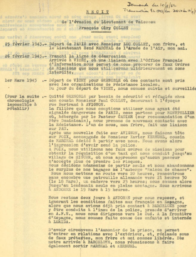 Récit de l'évasion du lieutenant de vaisseau François Collet