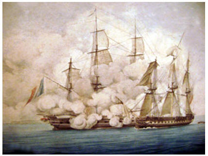 l'escadre anglaise forte de sept voiles. Après un combat héroïque,