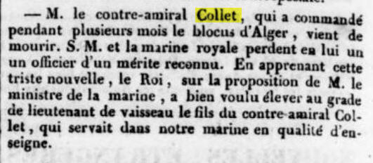 marine : « Le contre-amiral Collet (il avait été nommé contre-amiral