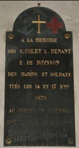 marbre aux inscriptions en lettres dorées. Sous le monument, dû à