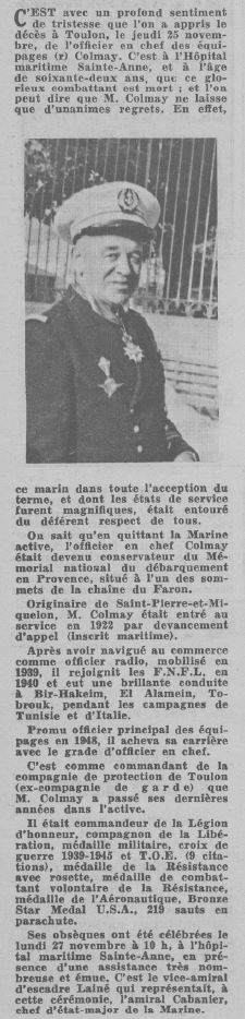 MIQUELON - Décédé le 25 novembre 1965 à TOULON (Var)