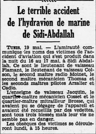 (Meurthe-et-Moselle) - Décédé le 16 mai 1939 sur le Lac de BIZERTE,
