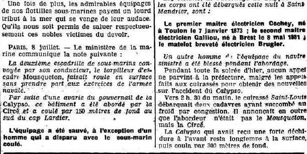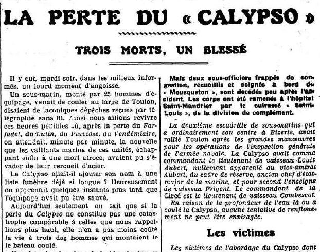 gouvernail, il aborde et coule la CALYPSO Q 048 alors qu’ils