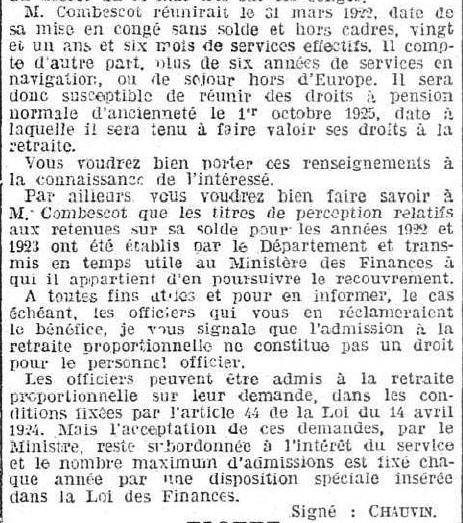 réserve le 1er octobre 1925; port ROCHEFORT.