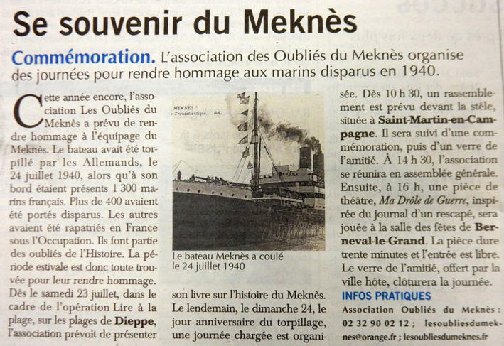 "MEKNÈS" est autorisé à rapatrier des troupes françaises vers la