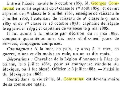 1892, le capitaine de vaisseau Communal a été nommé capitaine da