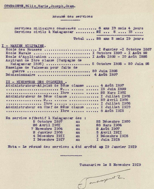 d'honneur, le 19 janvier 1919, administrateur en chef 1ère classe