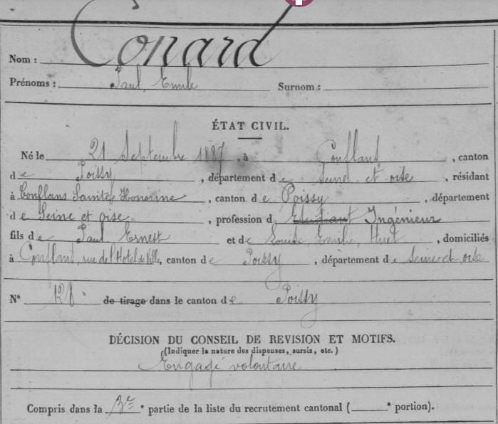 Né le 21 septembre 1887 à CONFLANS-SAINTE-HONORINE (Val-d'Oise) -