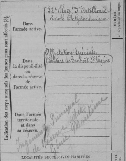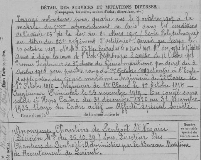 Ingénieur de 3ème classe le 1er octobre 1910.