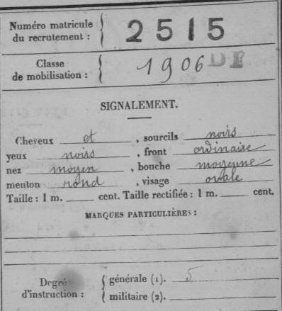 Au 1er janvier 1917 (affectation du 9 octobre 1913), au Service des